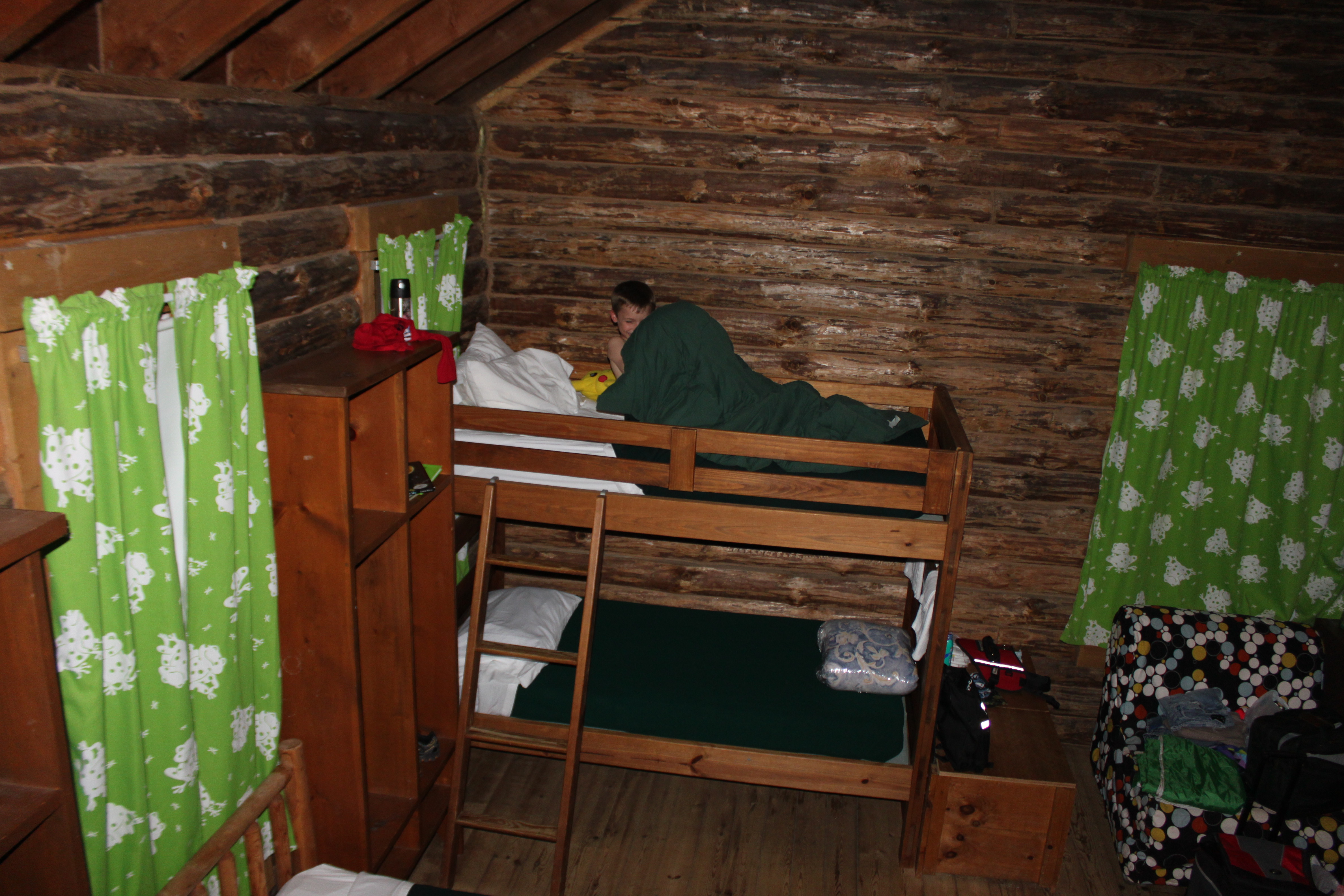 We headed into our room – the kids were stoked – it was full of 4 bunk beds and 2 stand alone beds. Of course, both kids wanted to be on the top bunks! We attempted to put the kids to bed around 10….and, from 10 p.m. until almost midnight, we proceeded to go back and forth with the kids about going to sleep. Will was wired for sound and Sasha was annoyed at her brother’s constant gabbing and her sudden onset of constant coughing. Finally, both drifted off to sleep – although Ralph and I got very little sleep – Sasha’s coughing kept me up (I was in the bed next to hers) and Will’s wiggle worming and yapping in his sleep kept Ralph up (who, for reasons STILL unknown to me – picked the bed BELOW Will!!!!)