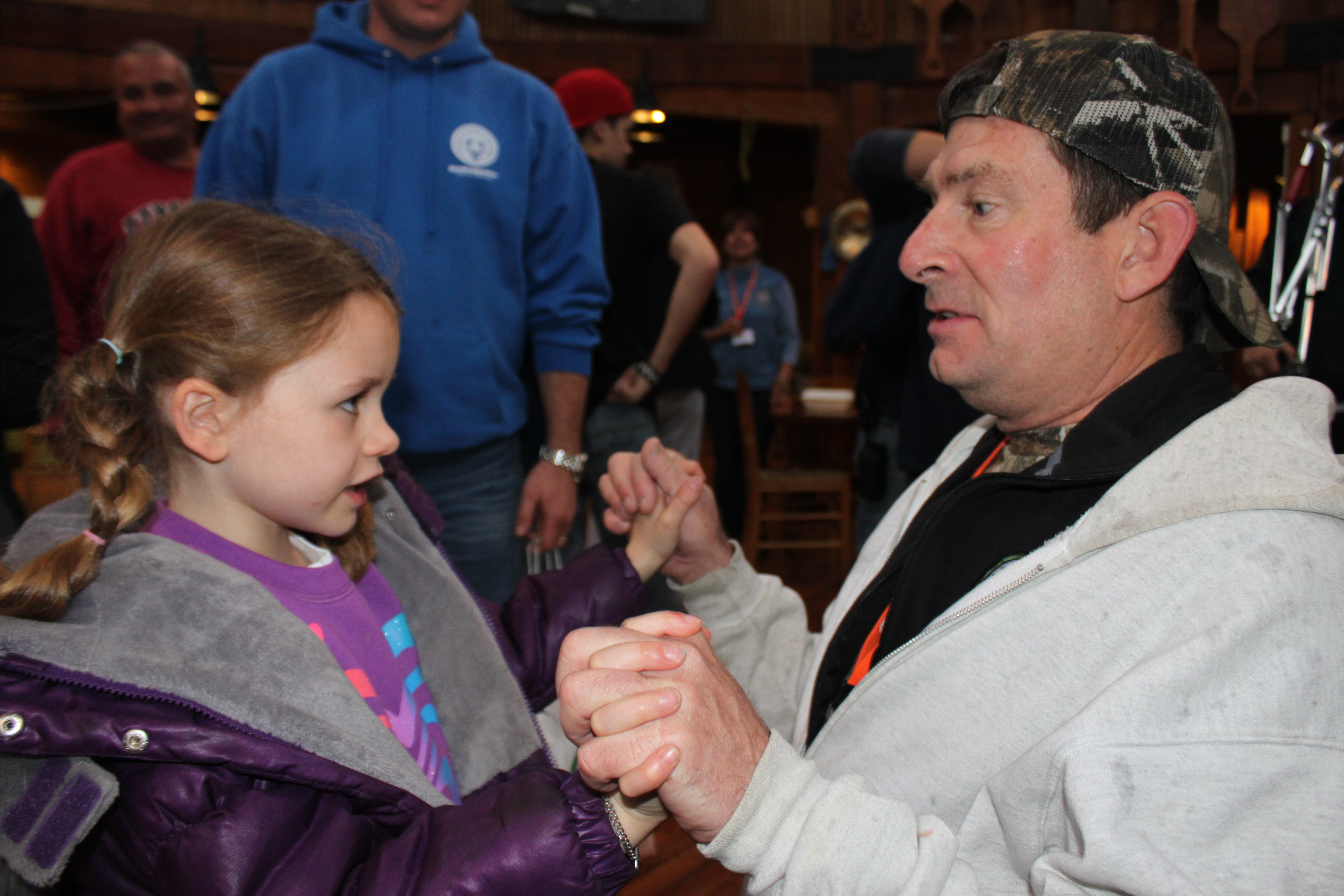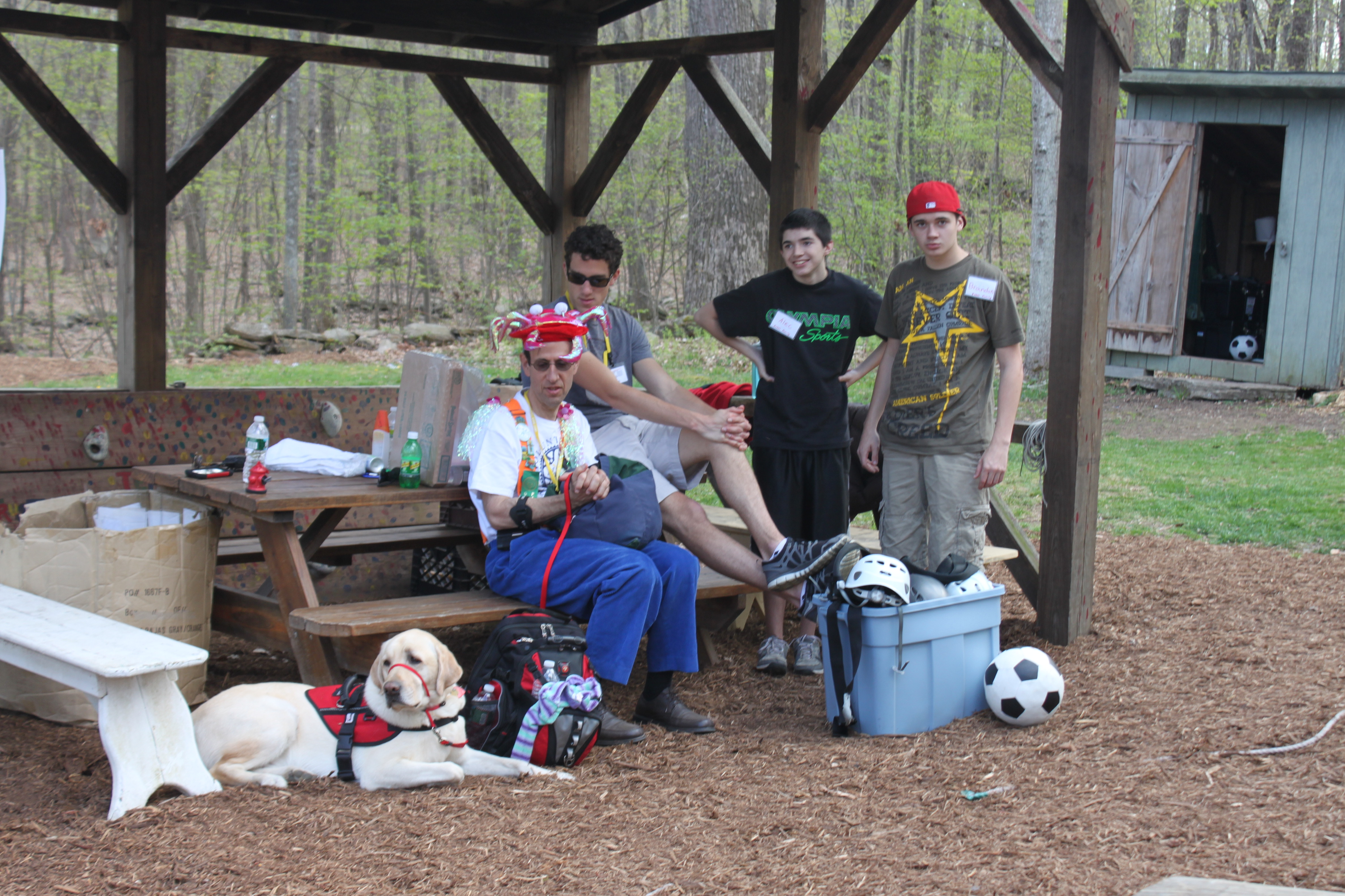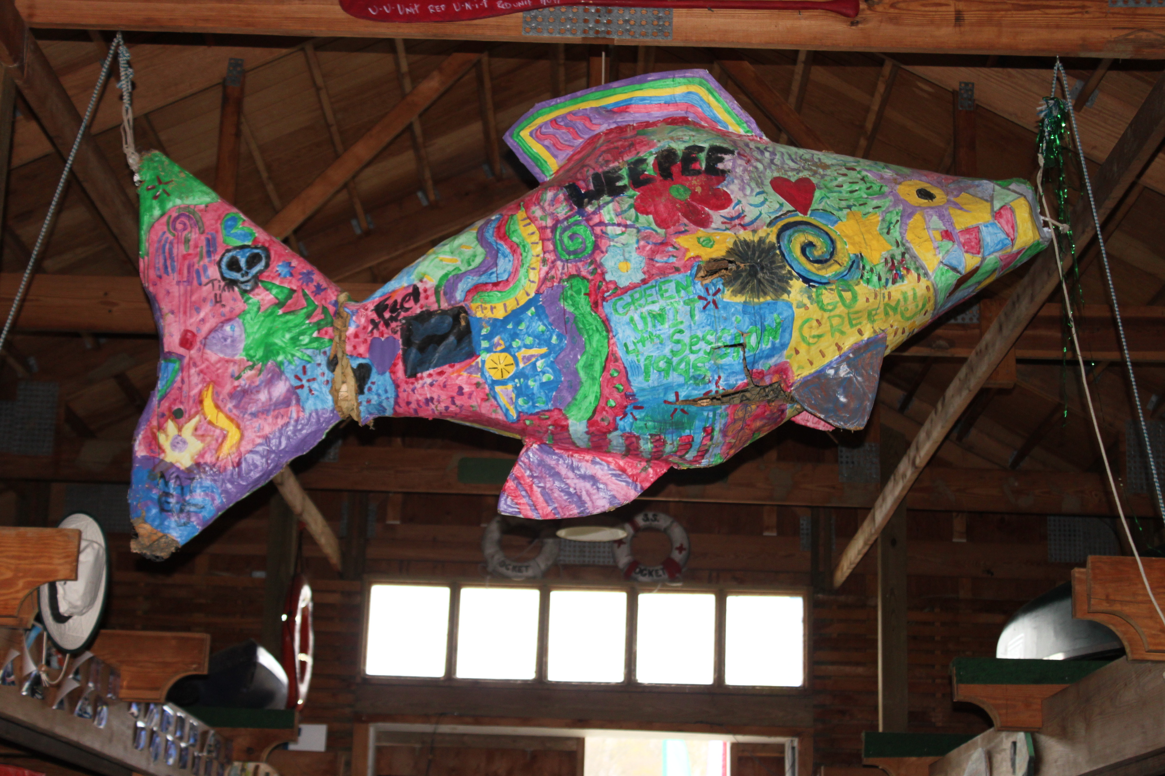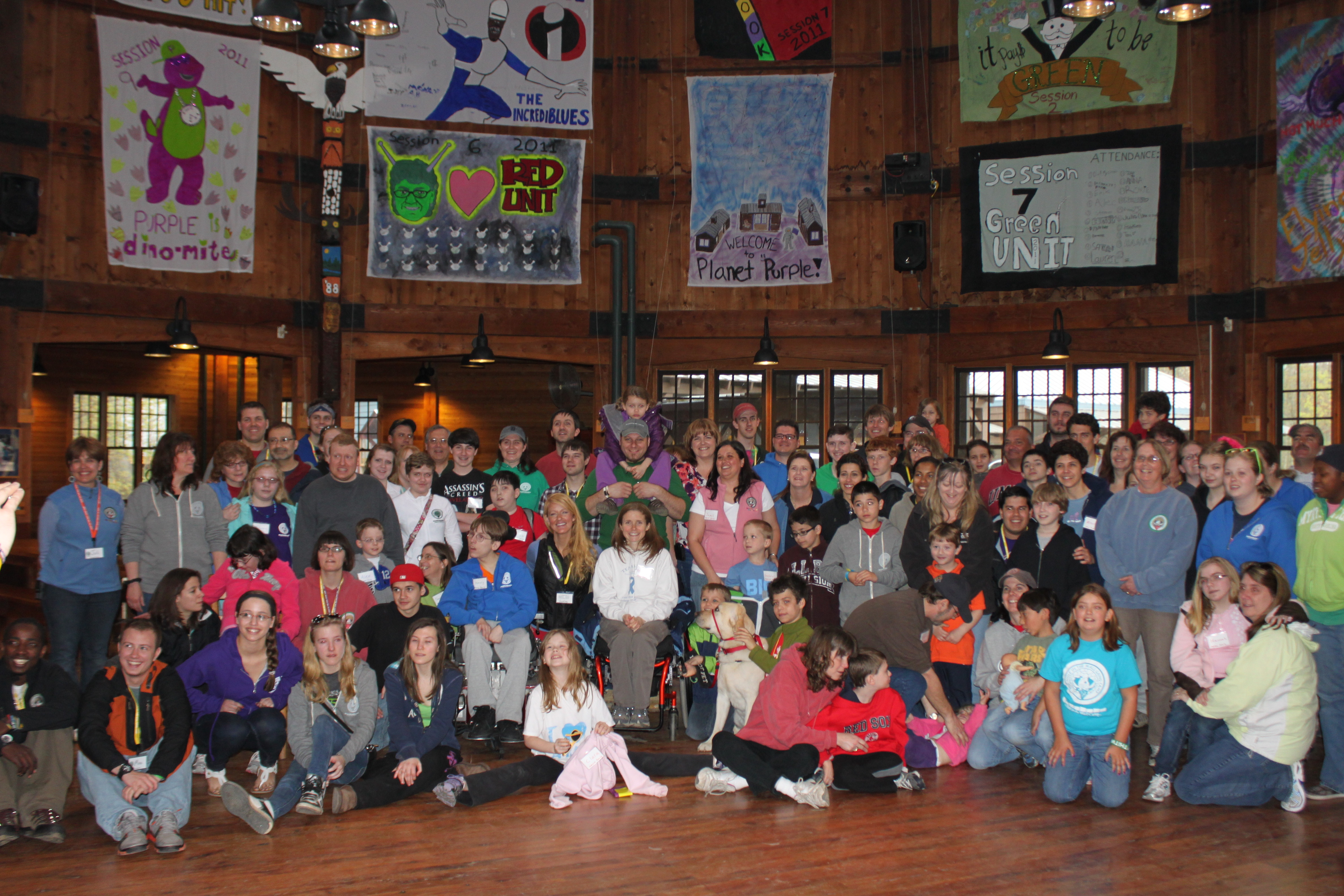 We headed into the dining hall and joined in on the festivities that were already taking place, and I ran into 3 of my friends (Nancy, Andy, and Karen) almost immediately! We then were introduced to the Camp, the schedule for the evening, and we learned a few “Camp” past times….like – shaking your “Bushy Tail” if you go in the wrong door for the dining hall (there’s one side for ‘in’ and one side for ‘out’ – and if you get caught going in the wrong way, you have to sing along with a song and do a dance (Shake your Bushy Tail!) with all the others who have done so). It’s pretty cute and the kids got a kick out of it.