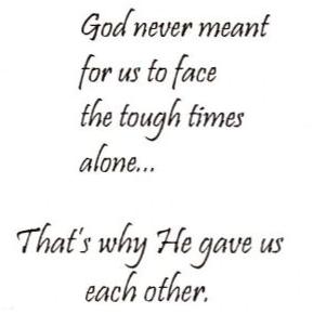 Like I said, NOTHING is by chance.  I do believe that God gave us each other because He KNEW we would need each other.