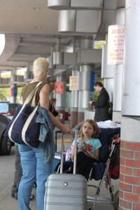 The kids STILL didn’t know where we were going, but they were even MORE surprised when they say my niece Brittany sitting in baggage claim waiting for us (she took an earlier flight). They were thrilled that all 8 of us would be taking our ‘adventure’ together!