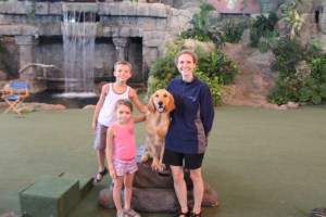 Of course, no vacation would be complete without a little drama, and OF COURSE, in true fashion with our luck – it started right away! First the airline lost our luggage, then the 2 vans we had rented weren’t available (Dollar Rental had a HUGE screw up and there were more than a dozen angry folks in the same position we were – without a vehicle), but – by far, the worse was yet to come. My mom had gone to get a drink from Starbucks, and I thought she had gone down to be with my dad and Ralph trying to figure out the van rentals – but it turned out that she never made it there (we discovered this an hour after I last saw her up in baggage claim). We had her paged twice over the airport intercom, but she didn’t return. The airport security advised us to call the police. They showed up and decided to start with a small scale search of the airport for her. Our concern was that her blood sugar drops dangerously low (she can drop down to the 20’s without warning, which is very dangerous) and that she could be in trouble somewhere and not be able to ask for it OR, worse yet – something awful could have happened to her. After the small scale search turned up nothing, the police then went to a full out search of the airport. It was the worst 2 hours of my life worrying and fearing that something had happened to my mom. Thankfully, they were able to locate her, and sure enough – her sugar was low and she was having issues cognitively (she was sitting in the Jet Blue terminal – um, we flew Southwest). We were so grateful that she was safe and sound…and we dubbed her with the ‘cone of shame’ and told her that she wasn’t able to go anywhere without a buddy from now on!