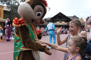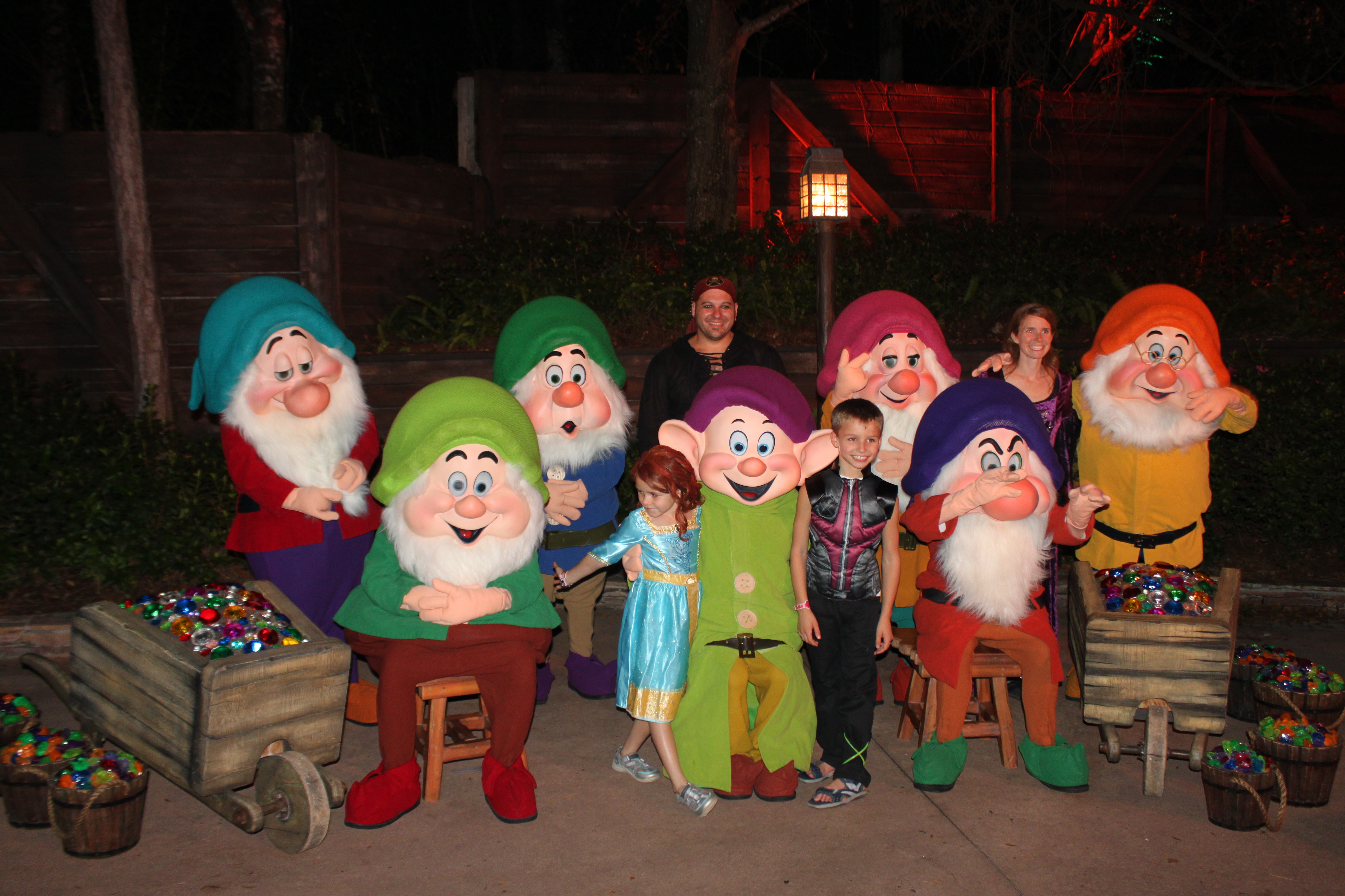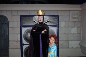 All in all, she had slept from about 8 p.m. the night before until 8 a.m., was up for 30 minutes to get showered and eat, and then fell back asleep and then proceeded to sleep for all but 4 or so hours up until 7 p.m. Thursday night. Thankfully, she was starting to perk up and we were able to finally make her wish come true – she was able to not only SEE Disney at Halloween, but she was able to MEET some of her FAVORITE Disney Characters (and yes, they aren’t all the good guys!)