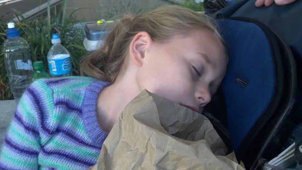When the day of the Halloween Party finally came (Thursday), Miss Sasha was not doing well – she insisted on going to Animal Kingdom (for our second trip there) so off we went….this was pretty much how she was the entire morning…