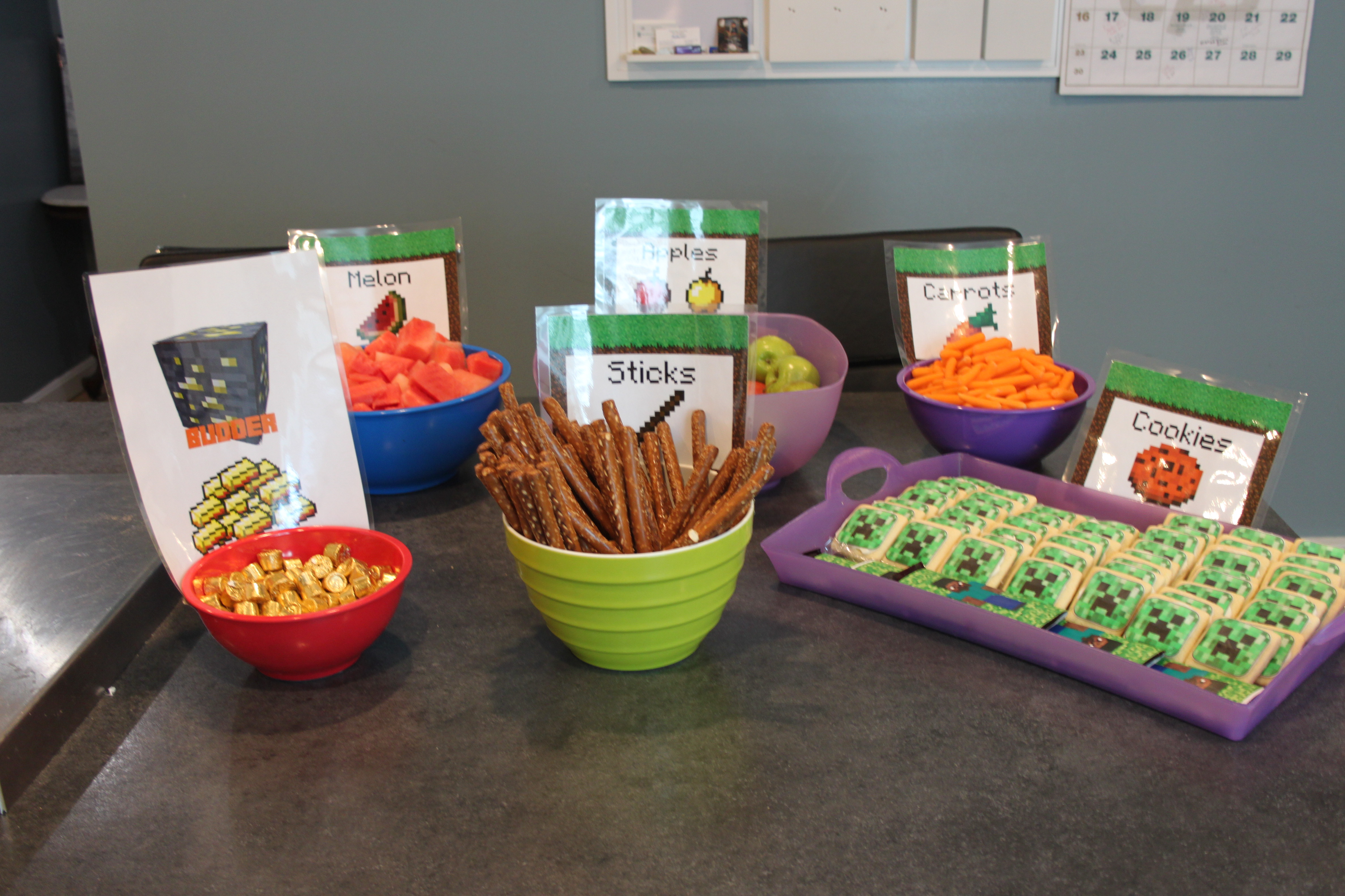 For Will’s birthday, we wanted to do something easy, simple, and fun. Will is a HUGE fan of Mine Craft, so we decided to do a Minecaft themed party. I dug deep into the internet and got a crash course in “All Things Minecraft” as, until that moment – I only knew it was a game on the iPad that Will, Sasha and Ralph play together.