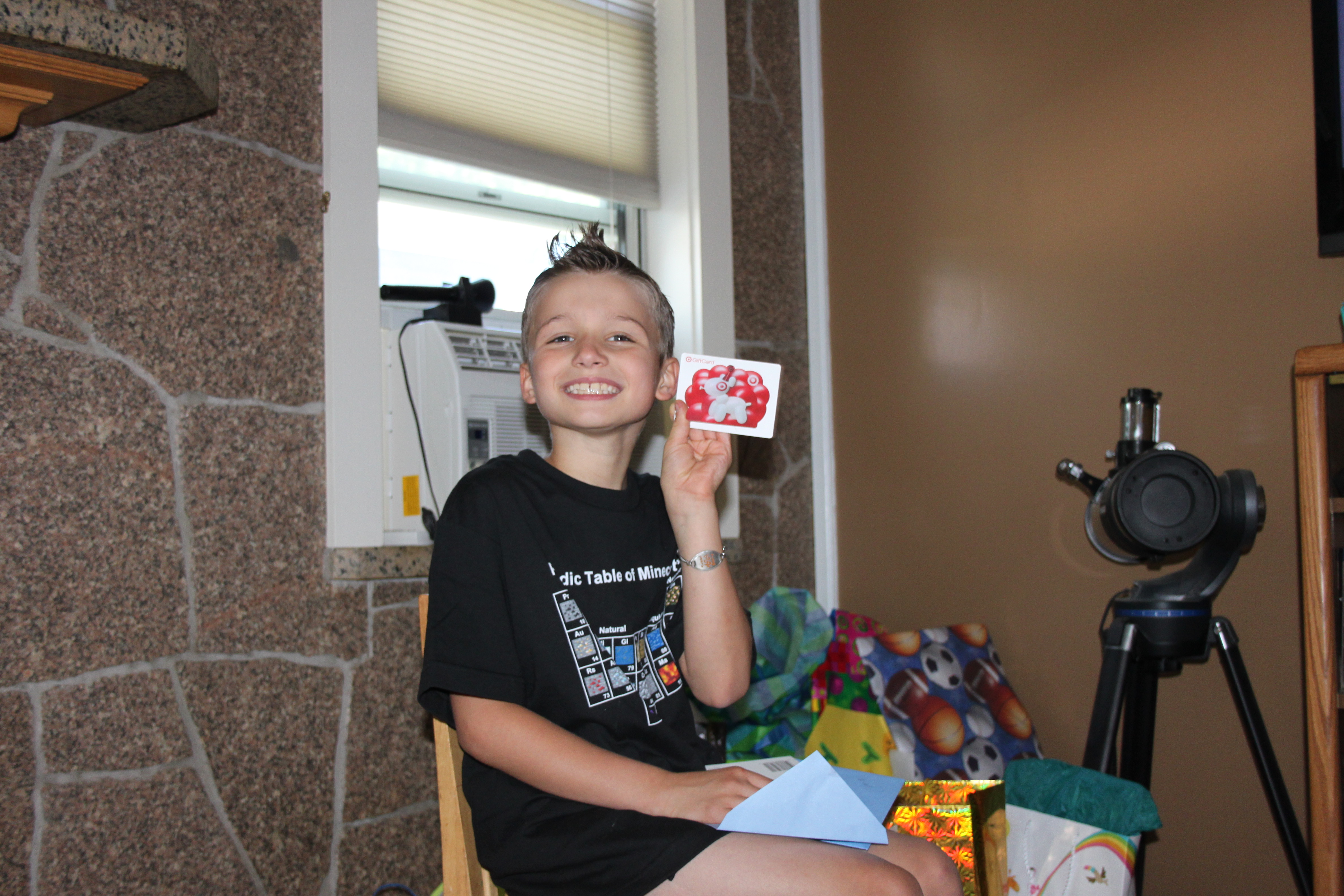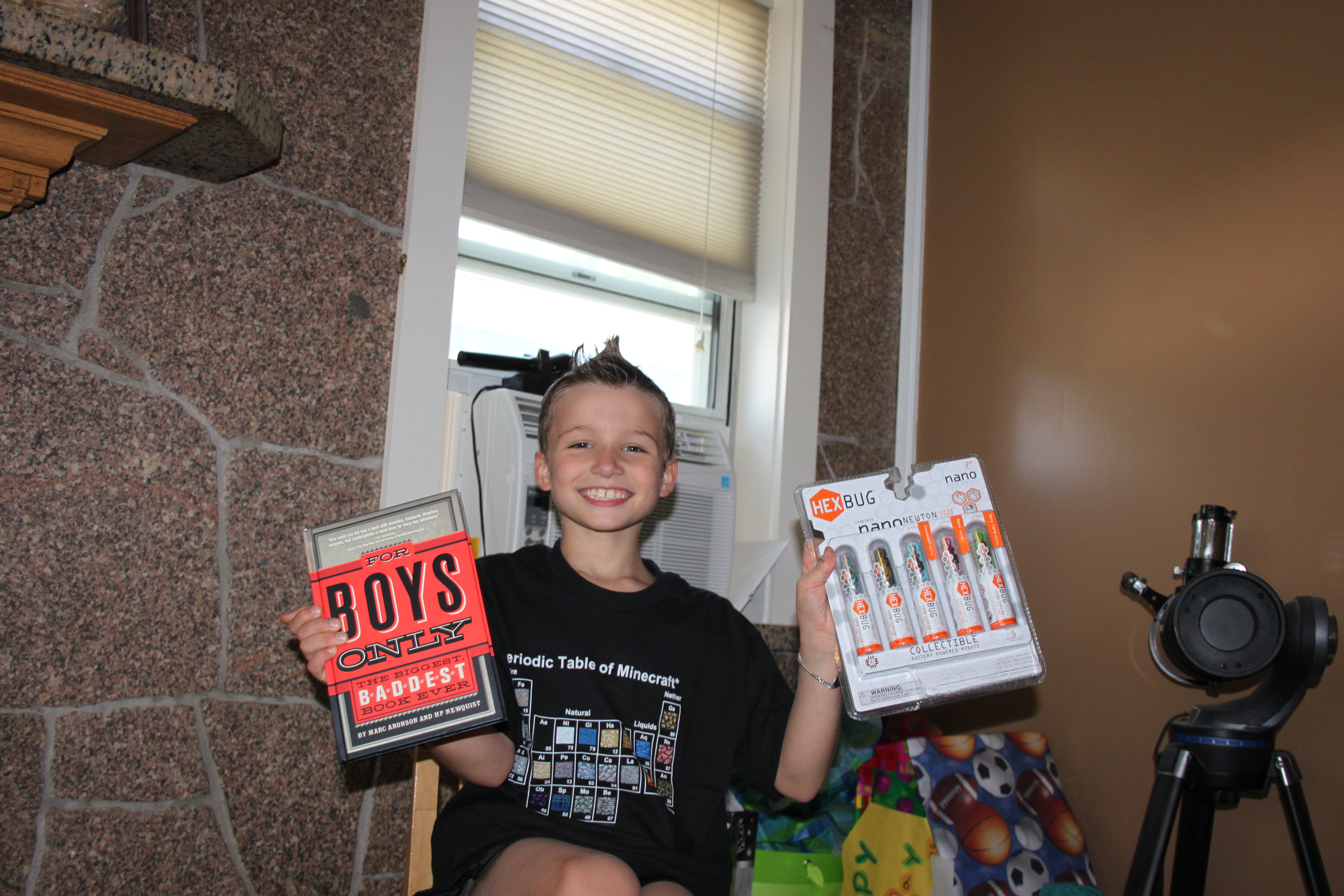 I also printed, cut out, and laminated a banner that says “Happy Birthday” in Minecraft font – and secured the back of it with glue dots to some hemp.