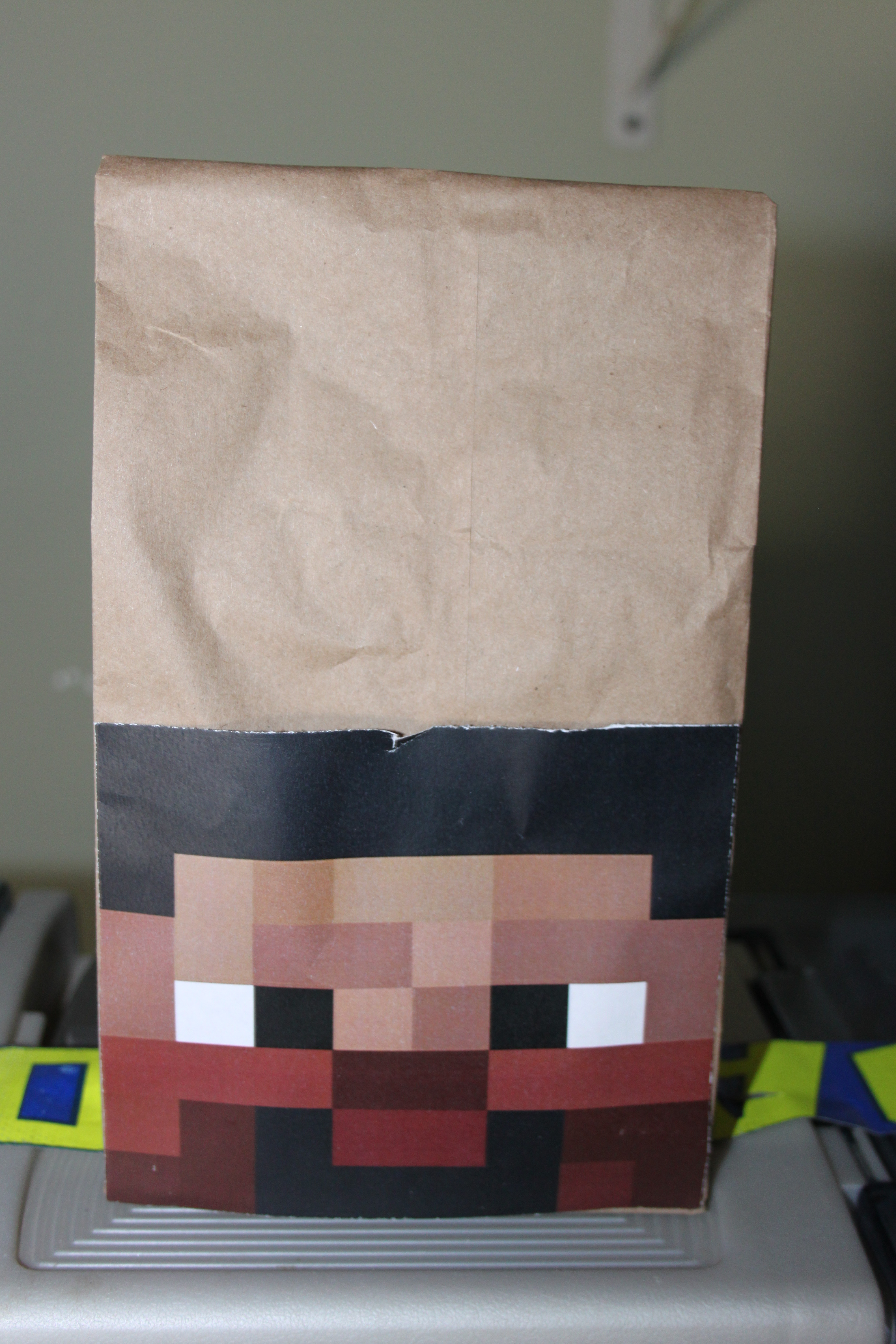 Use a simple small paper bag with a cutout of Steve’s face as the treat bag. SUPER easy!